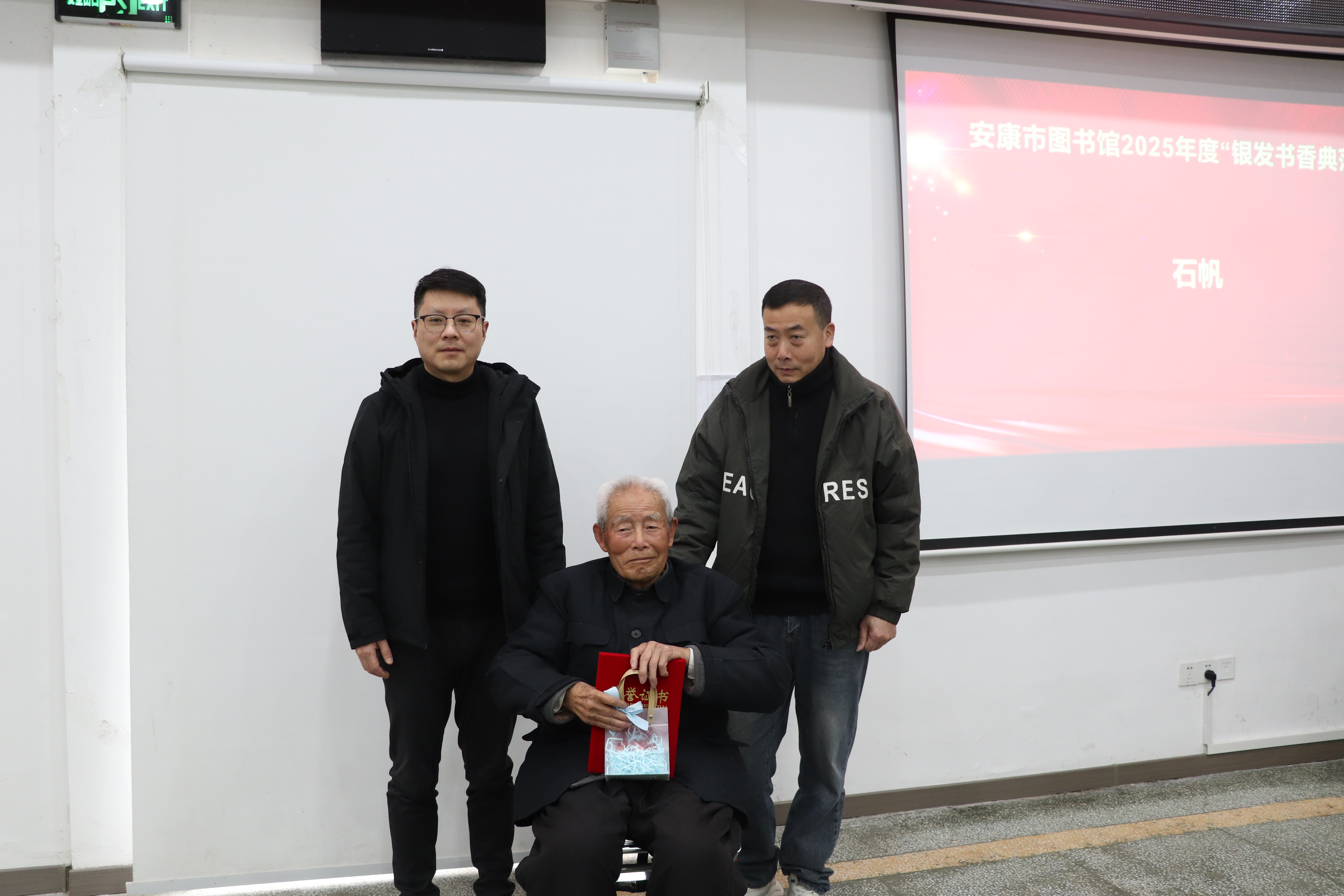 仪式现场宣读表彰文件,为19名优秀志愿者、10名优秀读者代表颁发荣誉证书;特别设立“银发书香典范奖”,授予96岁高龄读者石帆先生,致敬他一年借阅153册书刊的终身学习热忱。